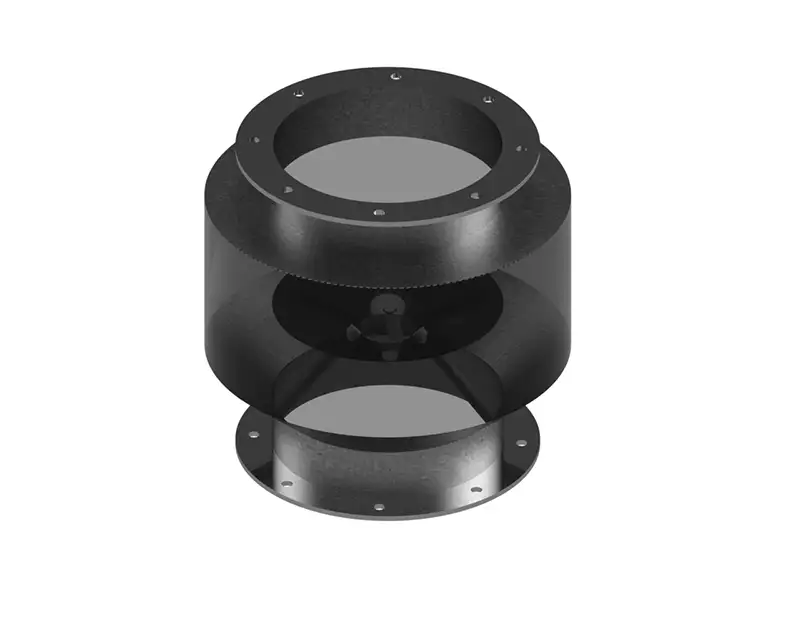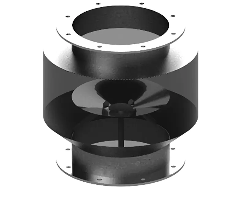 Elaborado con caño de costura lineal según diámetro requerido. Estructura fabricada en chapa LAC calibre 14. Plato de chapa LAC 3/16”. Bridas fabricadas en planchuela de 1” ¼ x 3/16.